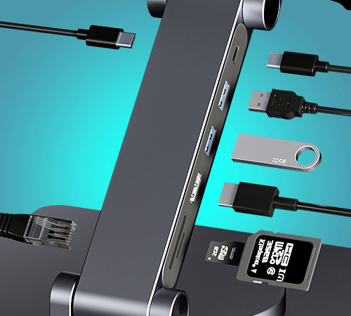 2xUSB-A 1xHDMI 1x fast charger 1x TF/SD Card reader 1xWire LAN Port 1xType-c connect laptop -